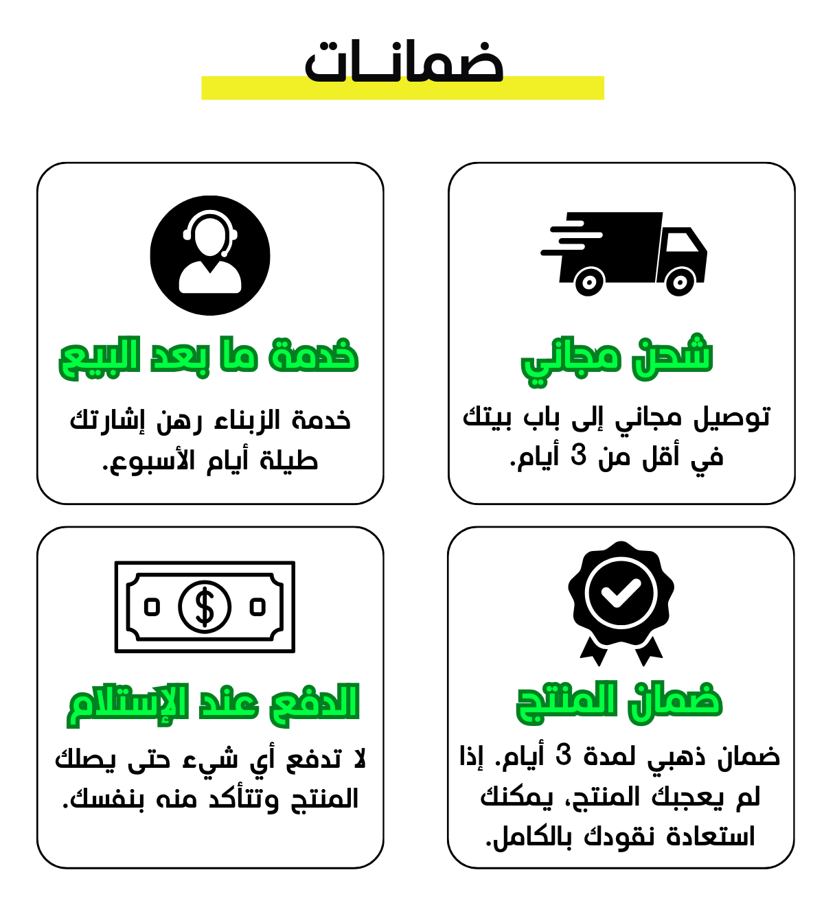 نحن واثقون تماماً أن طفلك سيحب صندوق العبقري الصغير. لهذا السبب، نقدم لكم هذا الضمان: إذا لم تكونوا سعداء بالمنتج 100% لأي سبب كان، تواصلوا معنا خلال 3 أيام وسنعيد لكم القيمة الكاملة للصندوق (يتم خصم تكلفة الشحن فقط).